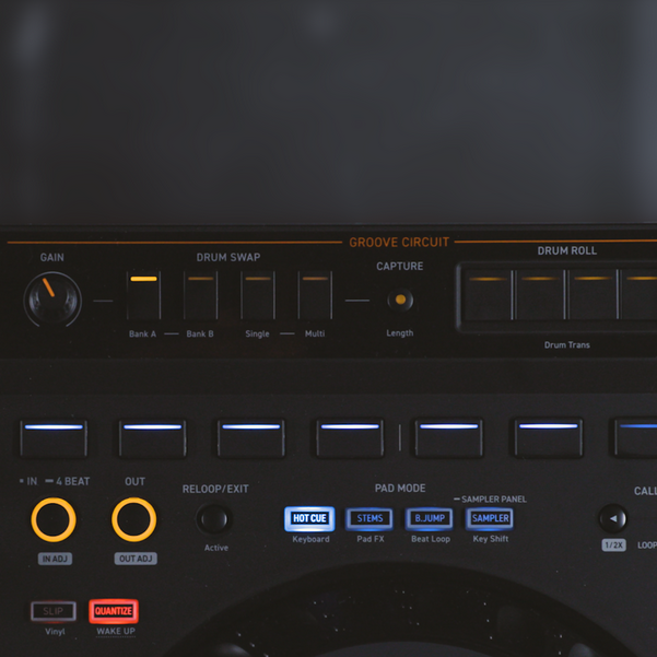 CIRCUIT機能は、パッドの上部に段差をつけてレイアウトされており、ジョグ操作時に手が干渉することなく、スタンダードなDJミキシングと創造的なパフォーマンスの両立が可能です。